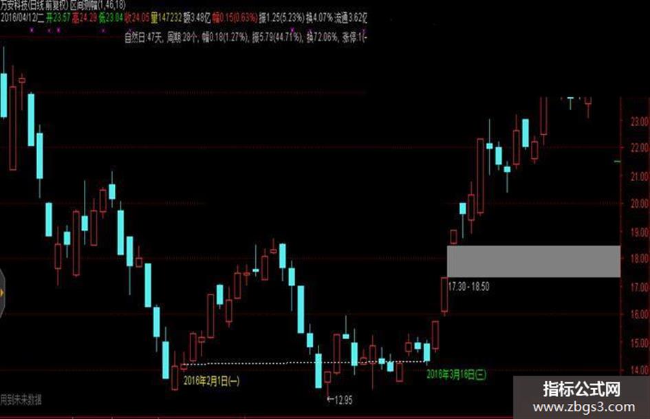 通达信新版本中,工具栏定点测幅取消了,动手做了个测幅指标,调节参数定点。