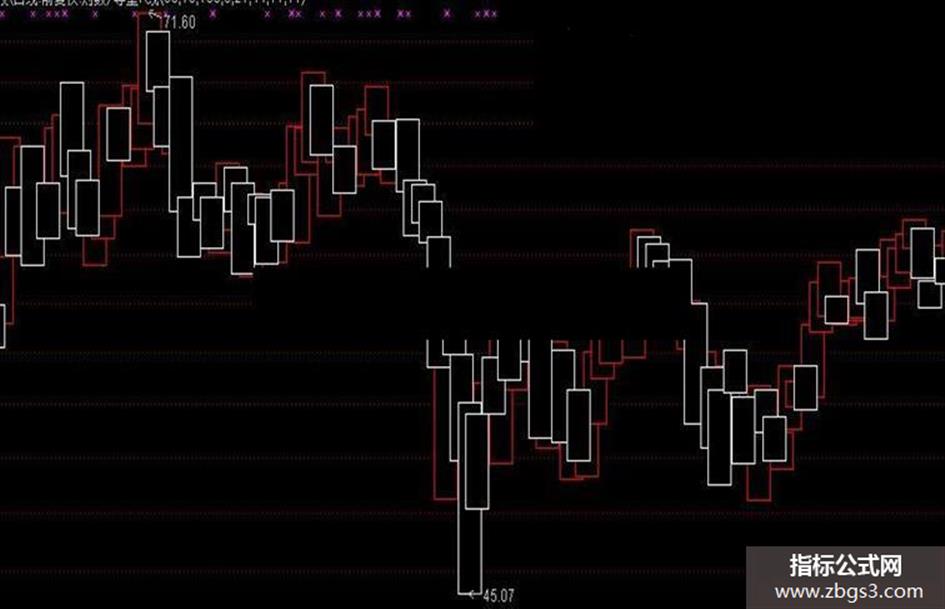 STICKLINE( C=OPEN AND C>REF(C,1),H,L,HSL*21,1),COLORRED;