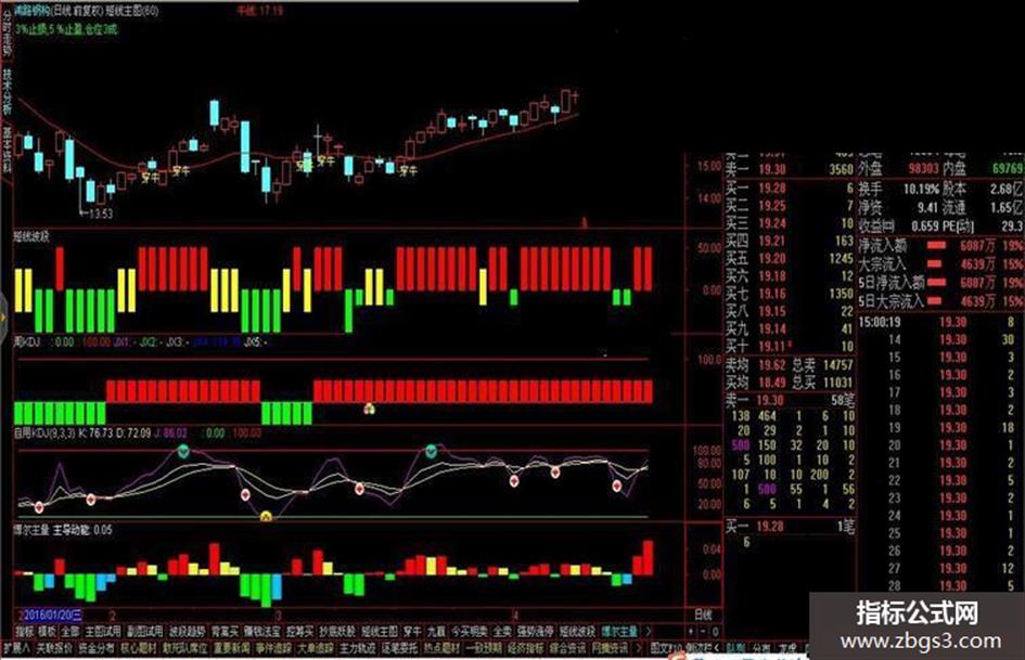 由于上次短线波段是引用周线指标,一周内信号有漂移,现改进去掉引用周线,使信号不漂移,但趋势没有原来稳定,可以两个对照看 .还是红柱持股,绿柱持币 ,黄柱观望