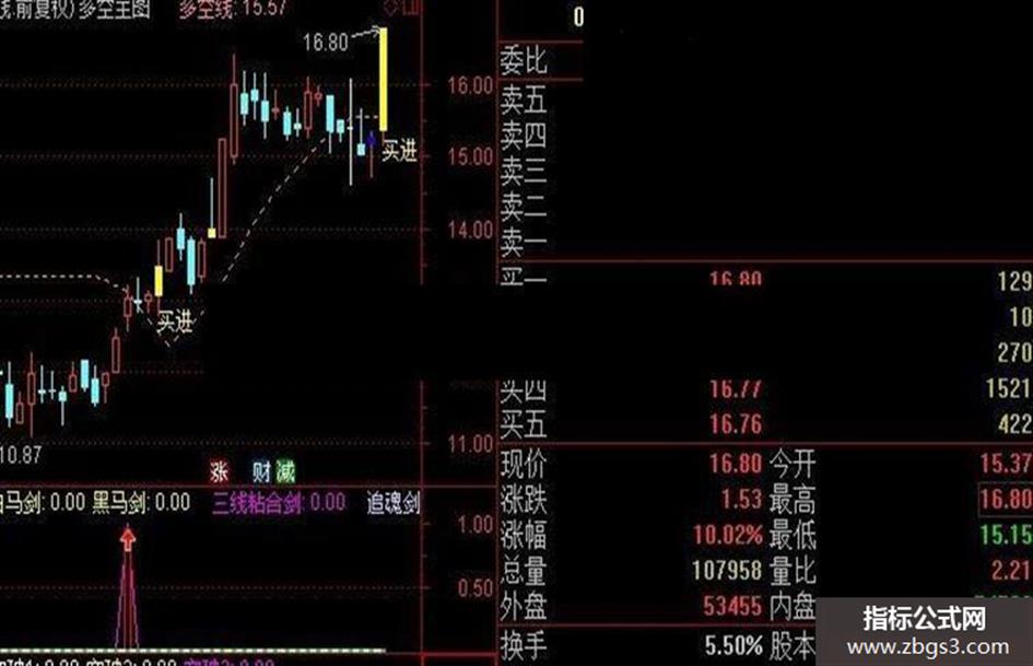 三线粘合剑:CROSS(分水岭,操作线) AND C>O AND C>REF(C,1) AND C/REF(C,1)>=1.018 AND CROSS(MA1,MA4) AND C>O AND C>REF(C,1) AND C/REF(C,1)>=1.018 AND CROSS(MA2,MA3) AND C>O AND C>REF(C,1) AND C/REF(C,1)>=1.018 OR CROSS(MA1,MA3) AND C>O AND C>REF(C,1) AND C/REF(C,1)>=1.018;