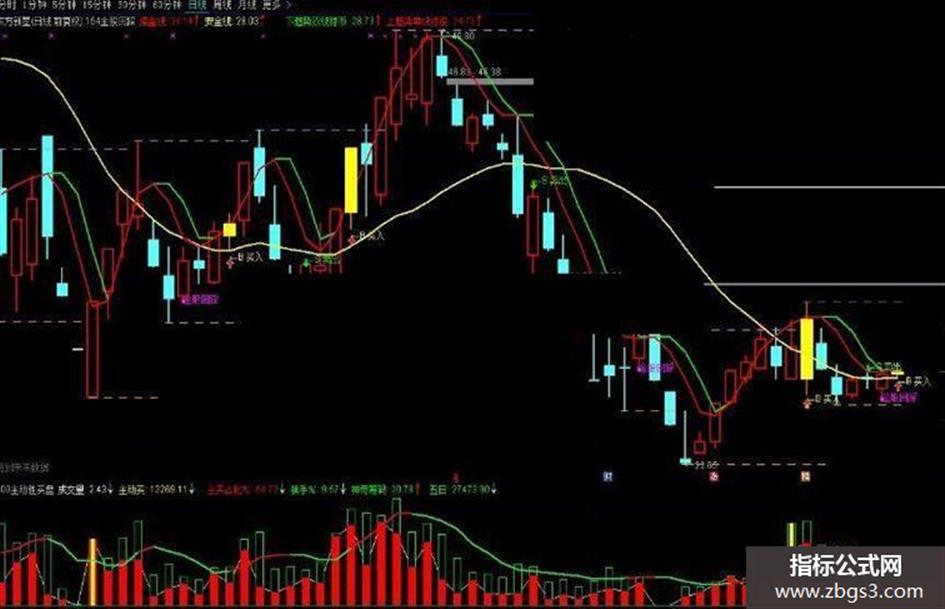 DRAWTEXT(CROSS(操盘线,安全线),L*0.99,'←B 买入'),COLOR00FFFF;