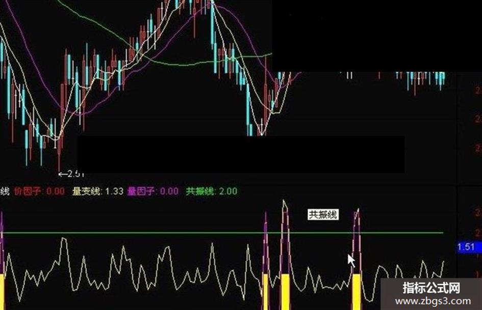 价因子:IF(CLOSE/OPEN>1.06,2.5,0),COLORRED; STICKLINE(价因子,0,1,3,0),COLORRED; 量变线:VOL/MA(VOL,5); 量因子:IF(VOL/MA(VOL,5)>2,2.5,0); STICKLINE(量因子,0,1,3,0),COLORYELLOW; 共振线:2;