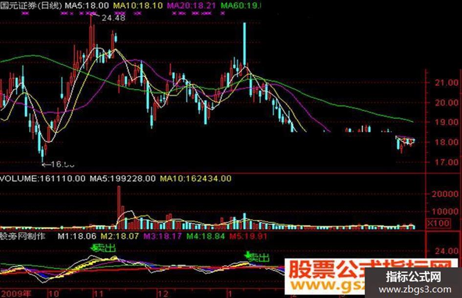 DRAWTEXT(CROSS(VAR2,VAR3),HIGH*1.02,'卖出'), COLORGREEN;