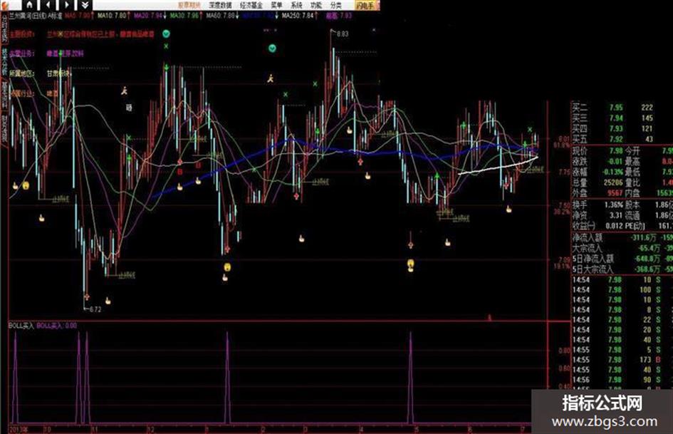 {BOLL买入} MID :=MA(CLOSE,20); UPPER:=MID+2*STD(CLOSE,20); LOWER:=MID-2*STD(CLOSE,20); BOLL买入:CROSS(CLOSE,LOWER),COLORMAGENTA;