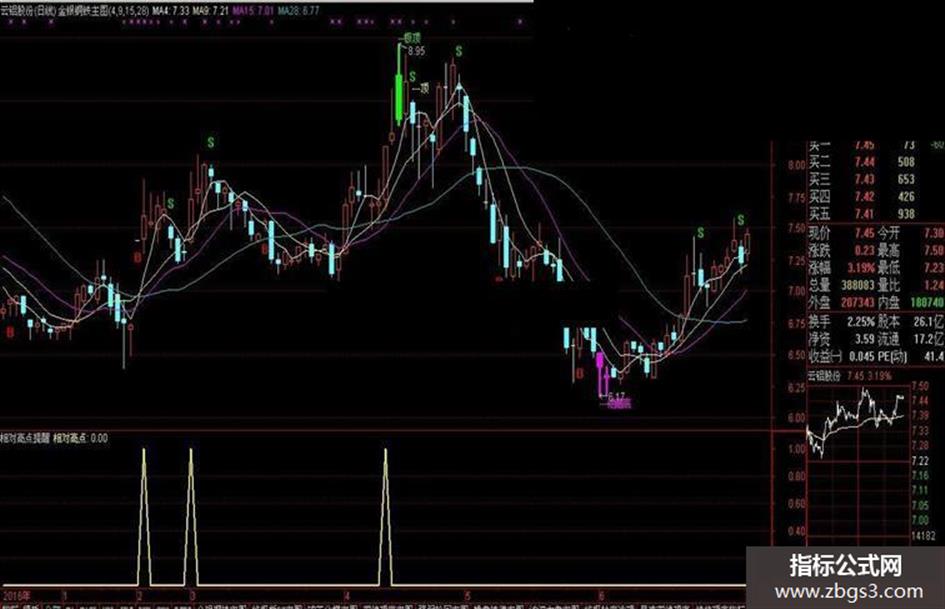 相对高点:FILTER(MA((V-MA(V,30))/MA(V,30)*WINNER(C)*100,1)>50,5)COLORYELLOW,LINETHICK2;