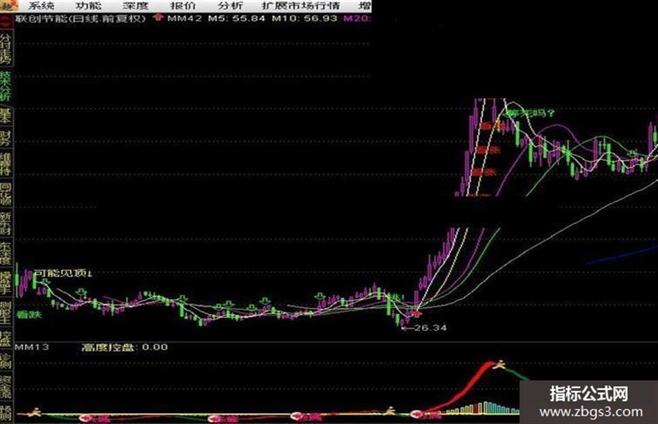 DRAWTEXT(VAR20>0.65 AND VAR15<9,M5,'看涨'), , COLORRED;
