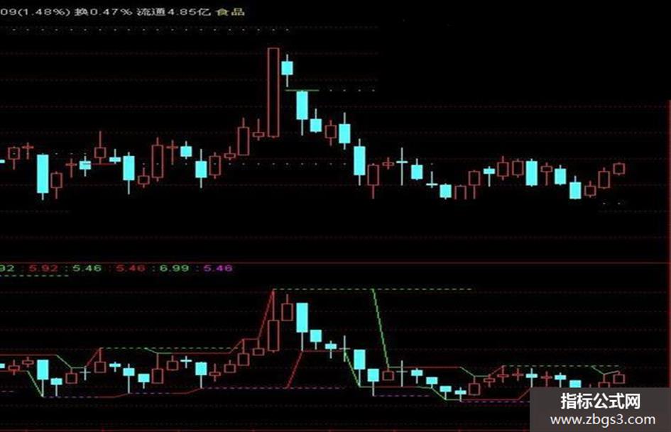 支撑位:IF(CROSS(J1,J2),LOW,REF(LOW,BARSLAST(CROSS(J1,J2)))),POINTDOT;