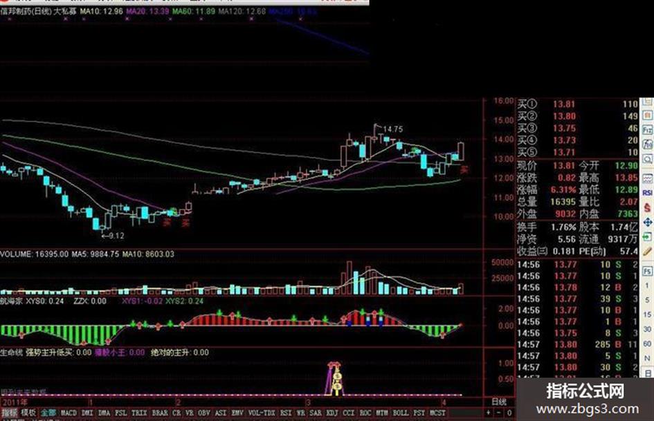 卖线:=EMA(SLOPE(C,20)*10+C,35);