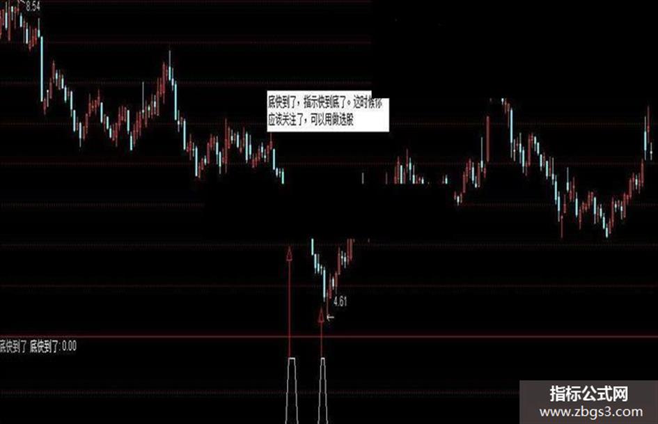 VAR1:=(2*CLOSE+HIGH+LOW)/4; VAR4:=(HHV(HIGH,4)-VAR1)/(HHV(HIGH,4)-LLV(LOW,4))*100-72; 底快到了: (SMA(VAR4,4,1))>6;