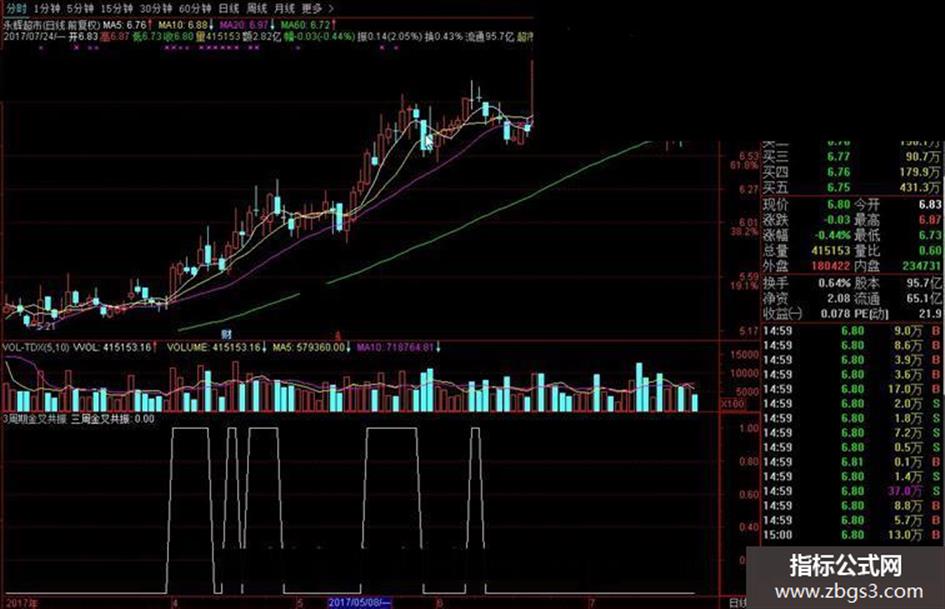 三周金叉共振:CROSS(A8,A9) OR A8>A9 AND (CROSS(A3,A4) OR A3>A4) AND (CROSS(A5,A6) OR A5>A6) AND (CROSS(周DIF,周DEA) OR 周DIF>周DEA) AND (CROSS(日DIF,日DEA) OR 日DIF>日DEA) AND (CROSS(月DIF,月DEA) OR 月DIF>月DEA) AND DYNAINFO(4)>0 AND DYNAINFO(37)<0.15;
