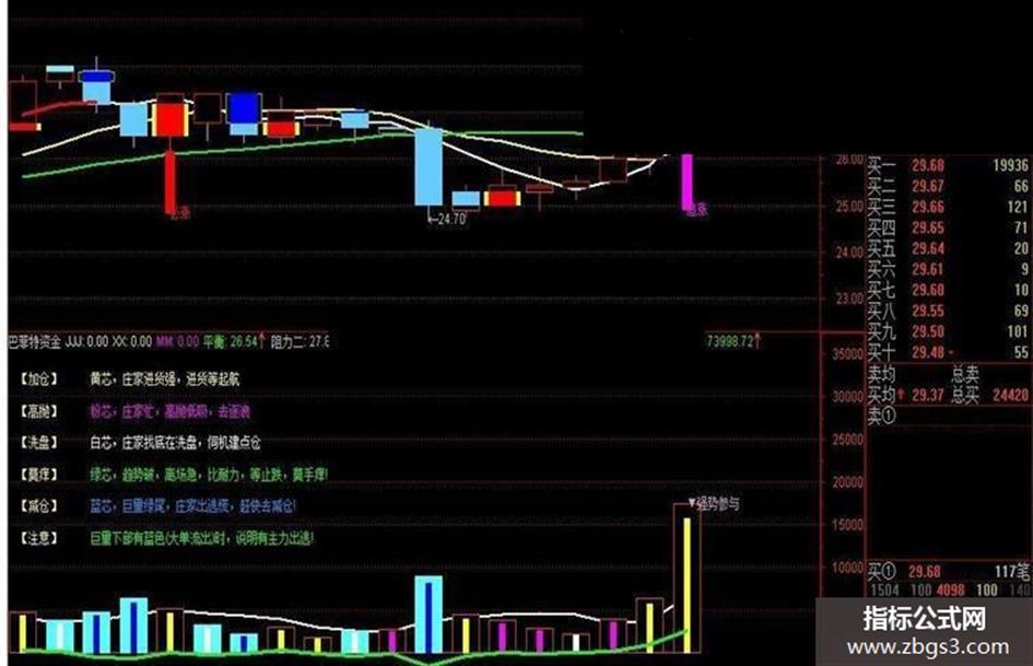 DRAWTEXT_FIX(1,0.1,0.55,0,'巨量下部有蓝色(大单流出)时,说明有主力出逃!'),COLOR00FF00,LINETHICK2;