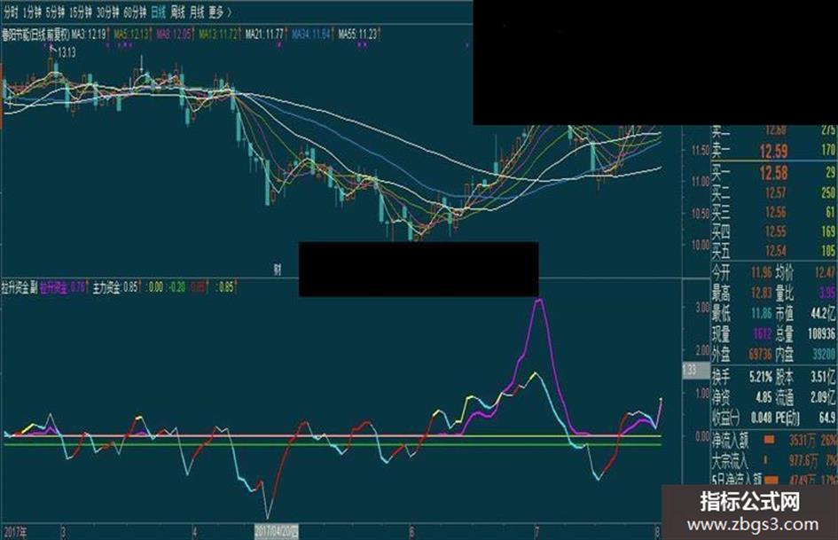 拉升资金:IF(VAR1D>0.015,VAR1F,0)/45,COLORMAGENTA,,LINETHICK2;