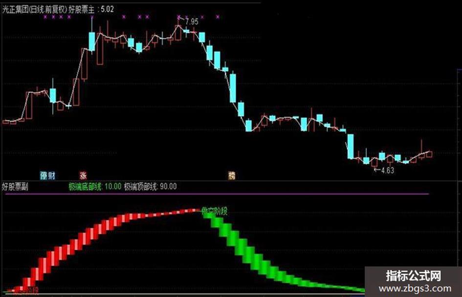 DRAWTEXT(CROSS(D,K) AND MA(CLOSE,5),D,'做空阶段'),COLORGREEN;