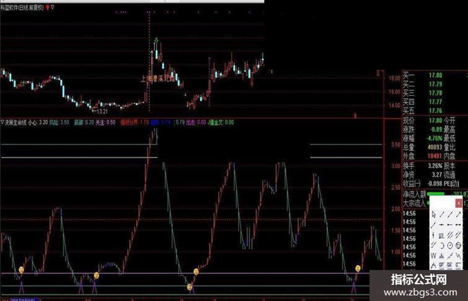 当满足条件动力线上穿底部的20日过滤时,在动力线+0.02位置画3号图标