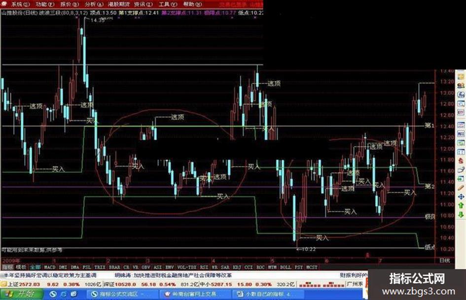 2、摸索篇:原来软件带的指标没有明显的买卖提示,逛了很多论坛,看到别人编的公式,好像捡到了宝贝,看到好的指标公式,感觉自己是股神了,赚钱太简单了。学习了一段时间,可是真真用在实战中就完全不是那么一回事了。这时候想到一个高人说的话:“你可以教会他K线技术、均线技术、成交量技术,给他最好的指标等等所有需要的知识技能,但是你教不会他一样最为关键的东西:随机应变和综合运用!如果不能做到这一点,那么前面的东西全都会起负面作用,就是说会害了他!”。这时候就想编写适合自己的指标公式,适合咱们小散的指标公式。