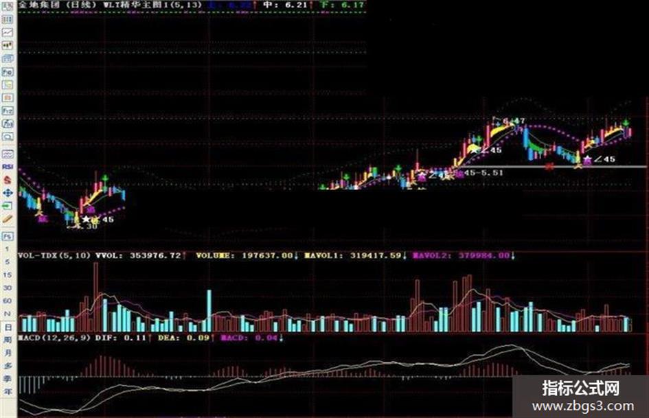 下:EMA(中,5),COLOR00FF00,LINETHICK1;