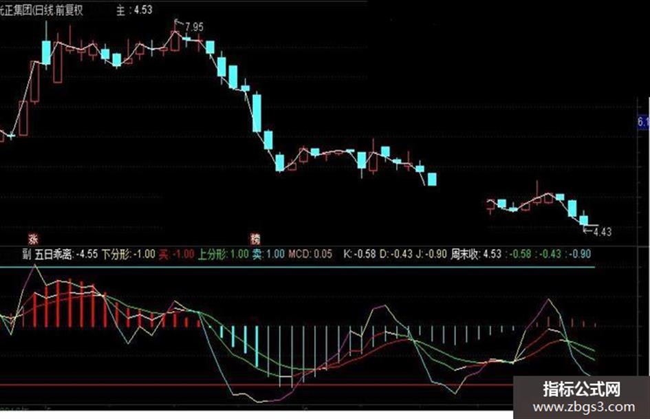 买:IF(KX AND M<=5,-0.5,-1),COLORRED;