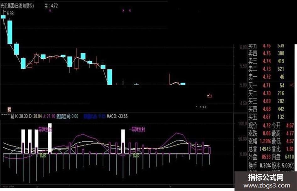 底部区间:IF((VAR6<DB),20,0),COLORFFFF00;