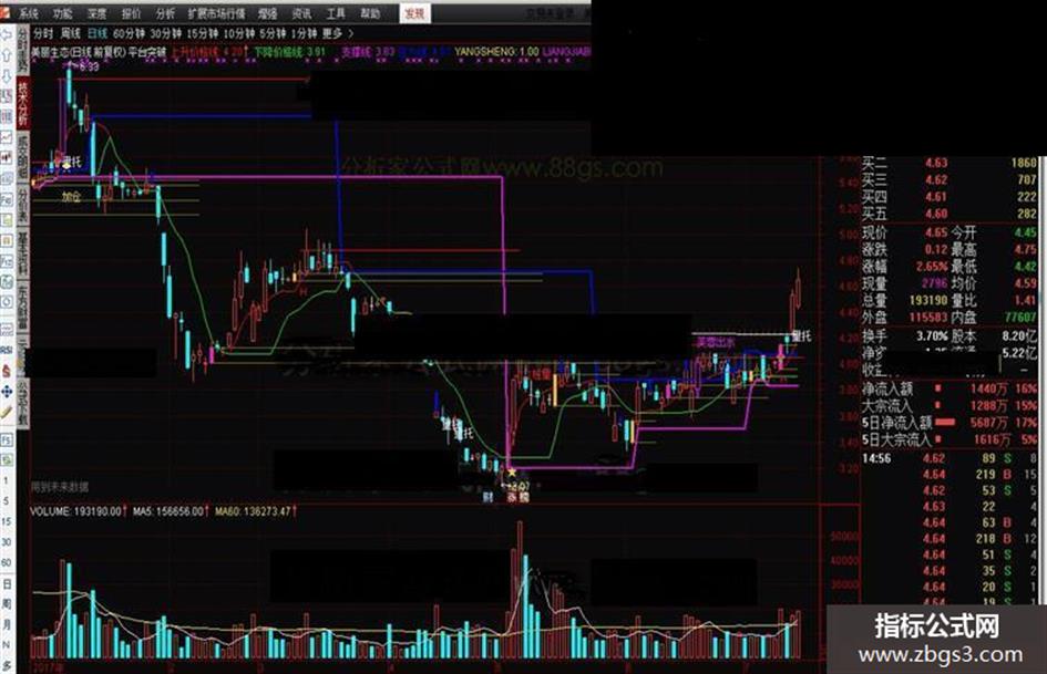 支撑线: VAR11,COLORFF00FF ,LINETHICK2 ;