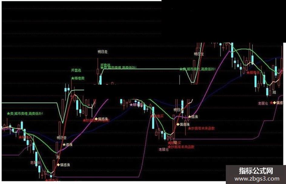 1、本指标注重抄底和逃顶,本人发现别的指标单独一个底部信号出现都不是非常准确,所以组合了3个抄底指标(抄底、老鼠仓、精准买)来判断底部,用了(开盘逃、精准卖和卖出)三个逃顶指标组合判断顶部,这样的风险小了很多,当抄底和精准买同时出,或者抄底和老鼠仓同时出,准确率较高。