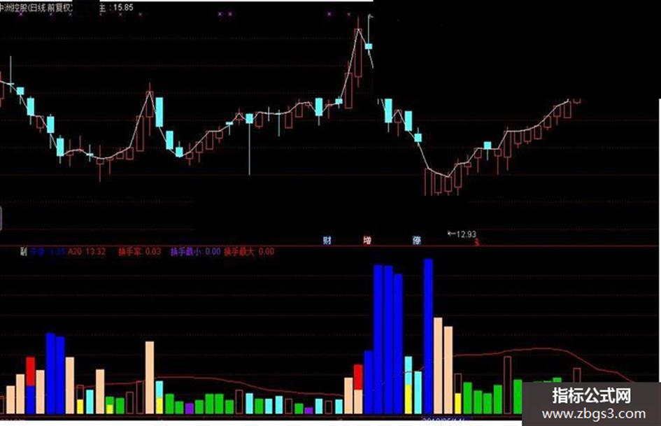 大天:=BARSLAST(换手最大),COLOR0000FF;