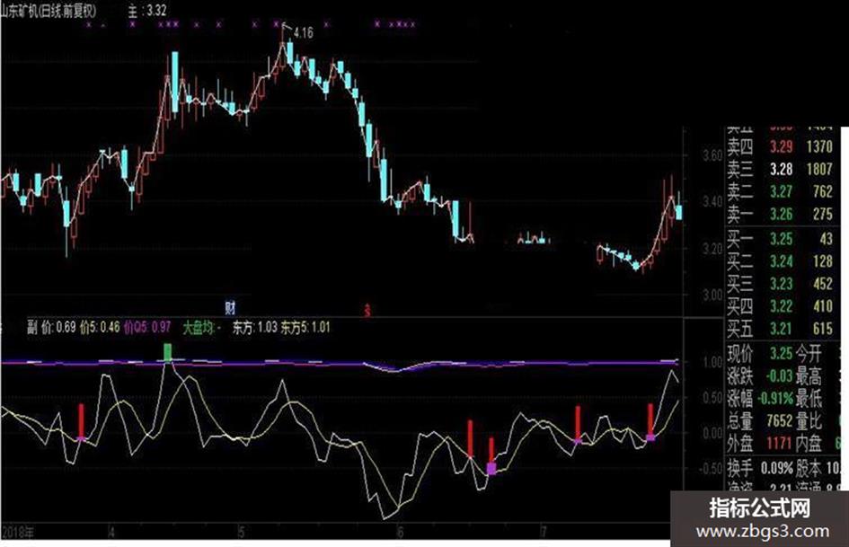 输出东方:收盘价*换手/收盘价*换手的3日简单移动平均的5日简单移动平均的3日指数移动平均