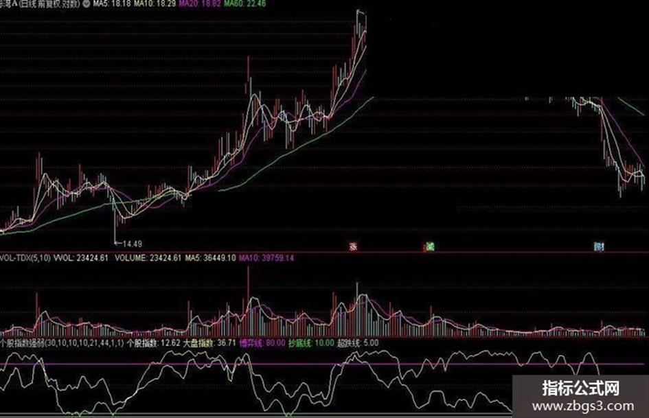 STICKLINE(CROSS(个股指数,5),0,5,2,0),COLORRED;