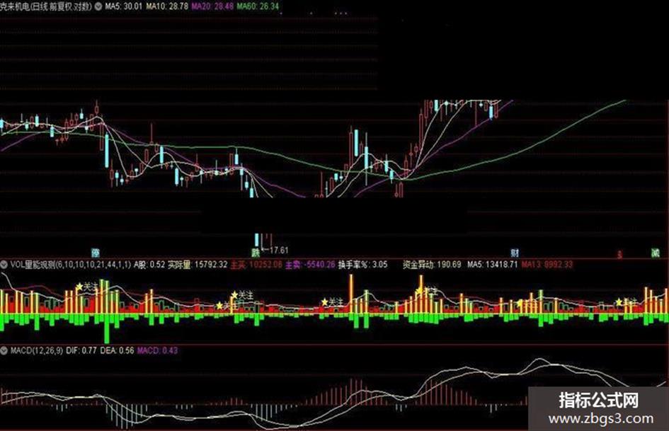 DRAWTEXT(CROSS(MA5,MA13),(V *1.05),'★关注'),COLORYELLOW;