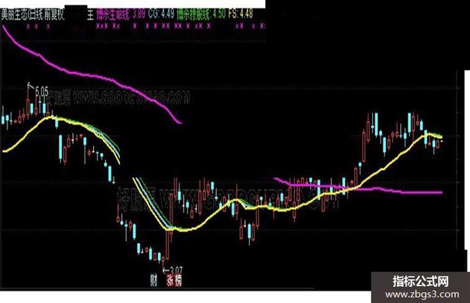 AMV0:=VOL*(O+C)/2; 博杀生命线:SUM(AMV0,88)/SUM(VOL,88),COLORFF00FF,LINETHICK2; CG:MA(C,17),COLORFFCC66,LINETHICK2; FL:=HHV(CG,2); 博杀持股线:HHV(CG,2),COLOR00FF00; FS:CG-(FL-CG),COLORYELLOW,LINETHICK2;