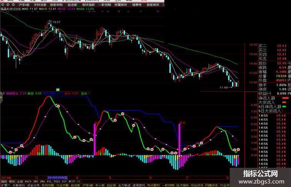 波峰波谷:SMA(拉升力A,3,1),COLORFF00FF;
