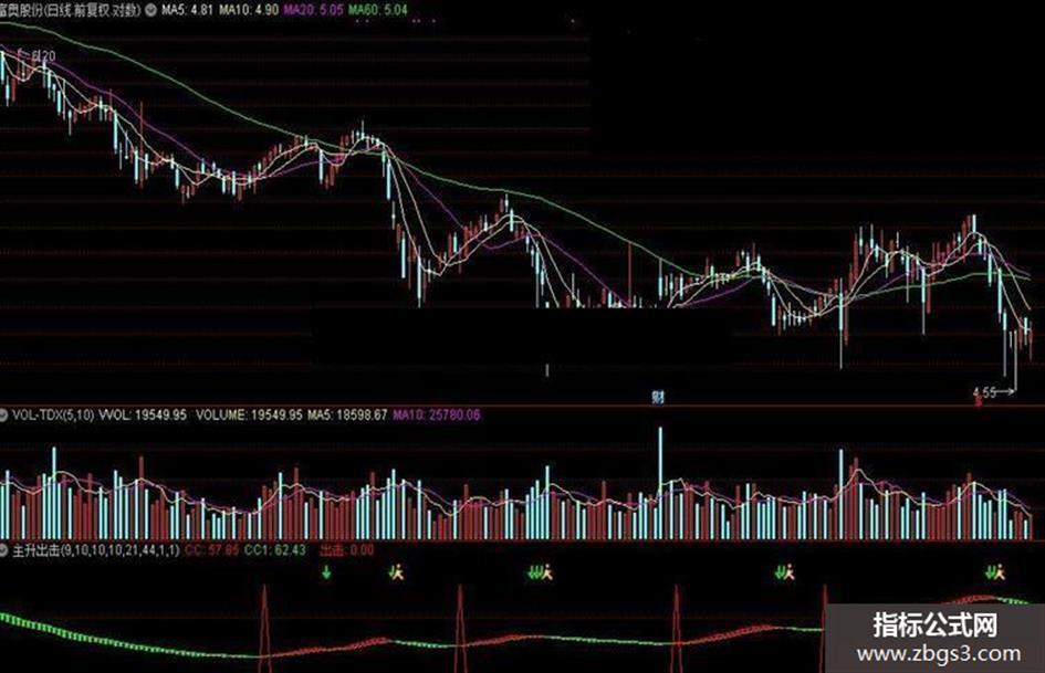 出击:IF((CROSS(CC,CC1) AND (CC1 < 顶) ),80,0),COLORRED;