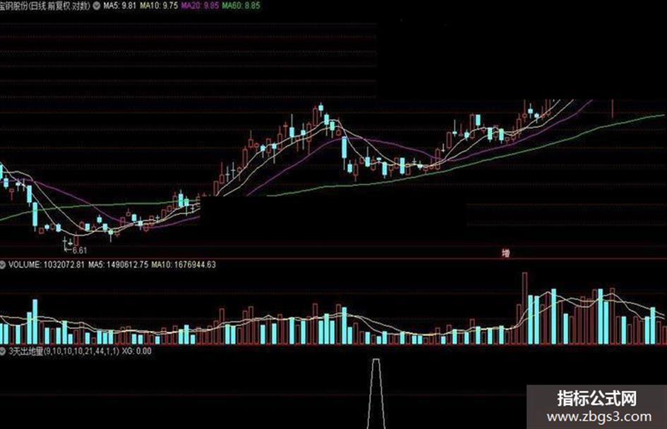 地量:=IF(CURRBARSCOUNT=1 AND PERIOD=5,VOL*240/FROMOPEN,VOL)<LLV (IF(CURRBARSCOUNT=1 AND PERIOD=5,VOL*240/FROMOPEN,VOL),14)*1.001; XG:COUNT(地量>0,3)=3;