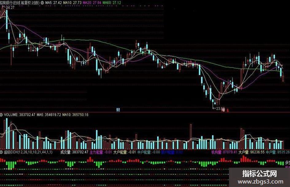 JZ:=V/(ABS(主力能量)+ABS(大户能量)+ABS(中户能量)+ABS(散户能量));