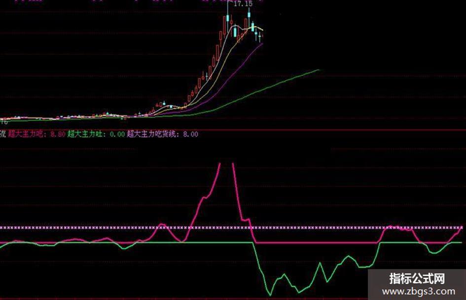 超大主力吐: IF(V4<=0,V4,0),COLOR66FF00,LINETHICK2;