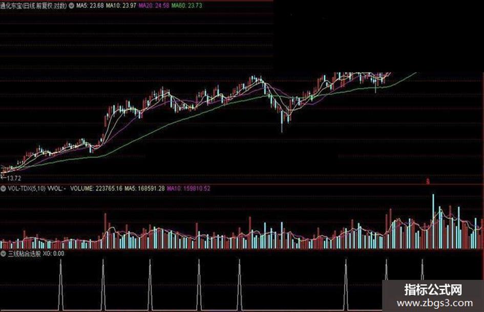 XG:C>REF(C,1) AND MA(C,5)>MA(C,10) AND MA(C,20)>MA(C,60) AND REF(MA(C,20),1)>REF(MA(C,60),1) AND MA(C,60)>REF(MA(C,60),1) AND FL>MA(C,60) AND FS>MA(C,60) AND FL=FS AND REF(FL,1)>REF(FS,1);