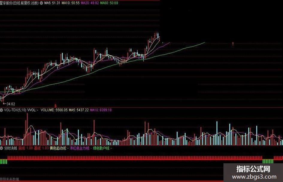 黄色起动线:EXPMA((DCLOSE/VBNH),20),COLORYELLOW,POINTDOT;