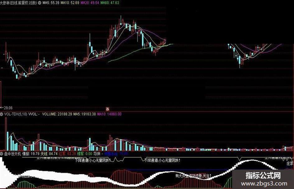 DRAWTEXT(VAR22 AND COUNT(VAR22,30)=1,90,'下降通道,小心无量阴跌! ');