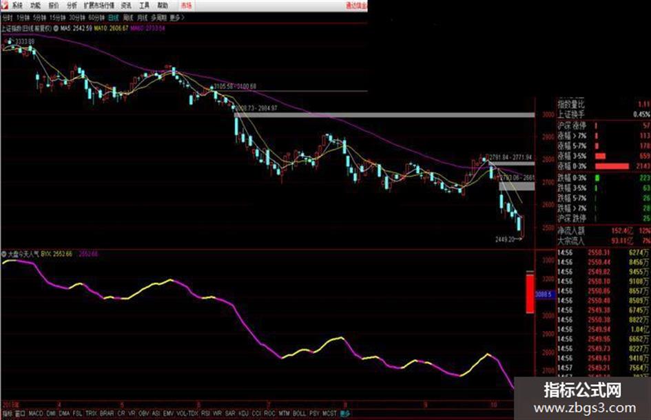 输出沪深总下跌家数,不是未来。源码BYX:收盘价的8日加权移动平均,画黄色,线宽为3