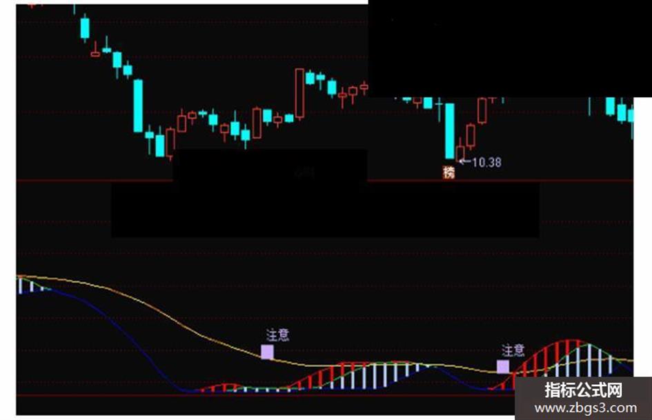 DRAWTEXT(VAR3>0 AND REF(VAR3,1)=0 AND (C+L)/2>MA((C+L)/2,8),强弱线+0.35,'注意'),LINETHICK3,COLORFFAACC;