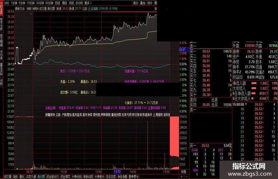 DRAWTEXT_FIX(1,0.3,0.75,0,STRCAT(市盈率,'倍'))COLORYELLOW;}