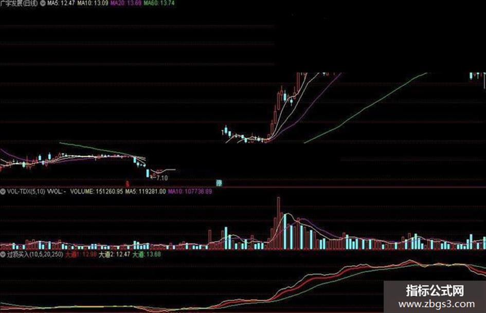大道1:(MA(C,3)+MA(C,6)+MA(C,12)+MA(C,24))/4,COLORRED,LINETHICK2; 大道2:(MA(C,1)+MA(C,3)+MA(C,6)+MA(C,9))/4,COLORYELLOW,LINETHICK1; 大道:EMA(大道1,13),COLOR66FF00;
