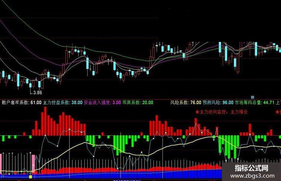 DRAWTEXT_FIX(T1,0.58,TS1,0,'★主力动向监控:主力增仓'),COLORRED;