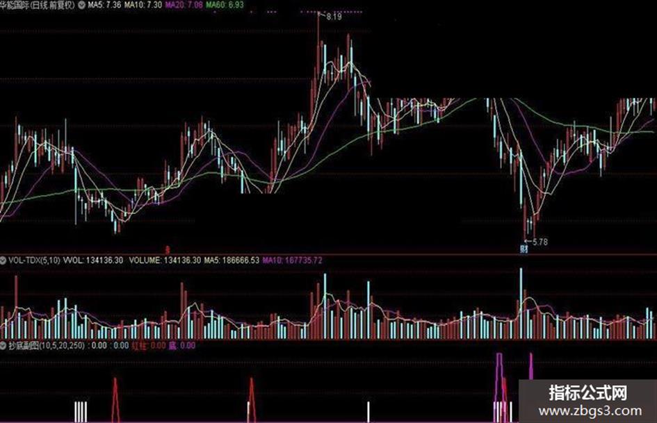 底:IF((MA(C,5)-C)/C>0.03 AND (MA(C,10)-MA(C,5))/MA(C,5)>0.03,23,0),LINETHICK2,COLORFF00FF;