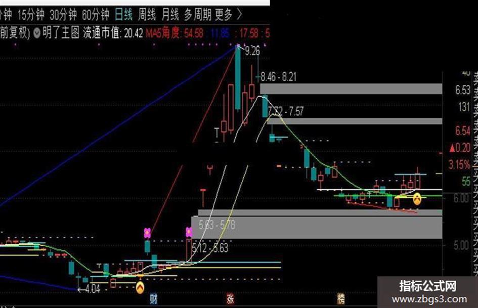 MA5角度:ATAN((MA(CLOSE,5)/REF(MA(CLOSE,5),1)-1)*100)*180/3.142,NODRAW,COLORRED;