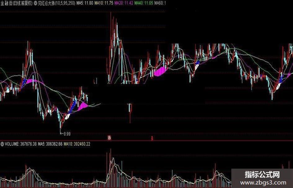 STICKLINE(MA20>=MA60 AND MA60>=MA40,MA40,MA60,4,0),COLORFF00FF;