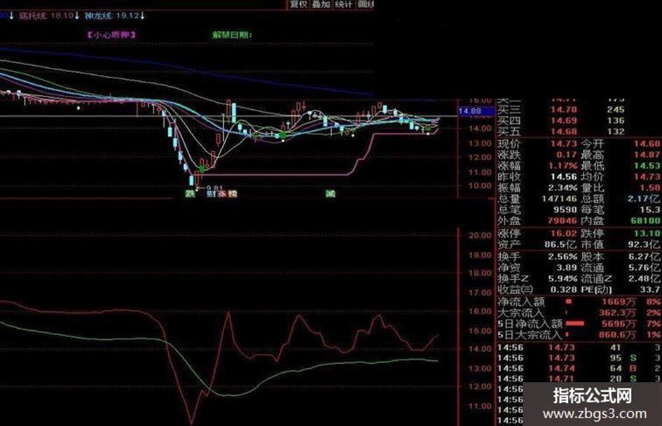 通达信仿某软件【分时主力进入】副...