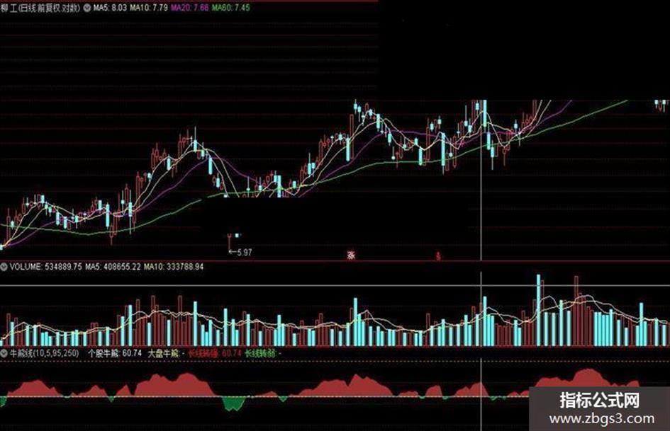 长线转强:IF(个股牛熊>50,个股牛熊,DRAWNULL),COLORRED;