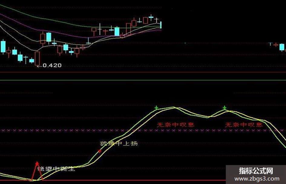 DRAWTEXT(CROSS(小股民,新庄) AND 小股民<22,20,'绝望中诞生'),COLORWHITE,LINETHICK7 ;