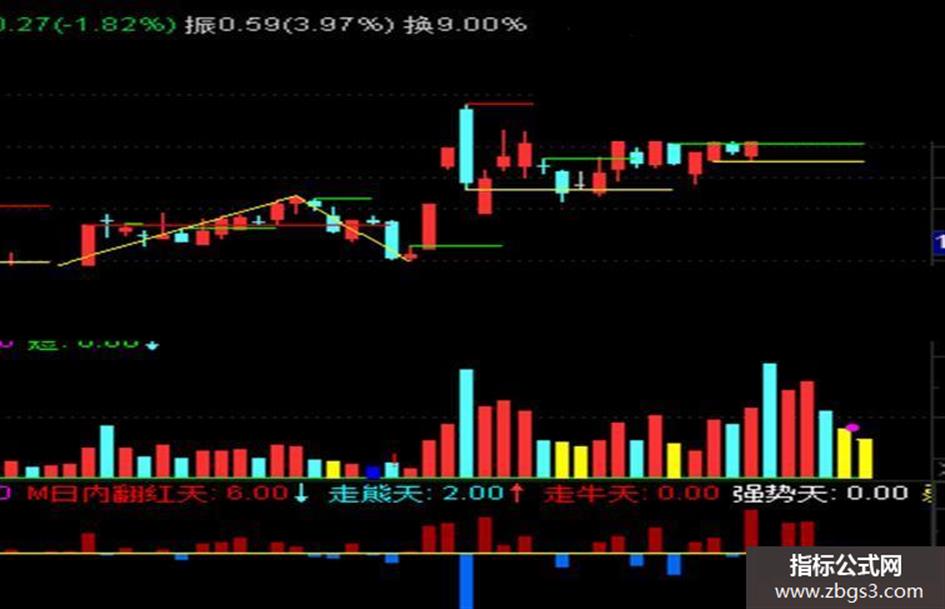 M日内翻红天:COUNT(进出量>0,M),COLORRED;