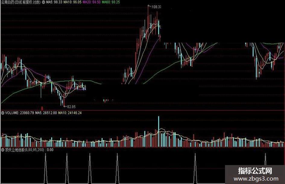 出击:=IF(CROSS(趋势,人气) AND (趋势<30),20,0),COLOR0000FF,LINETHICK2;